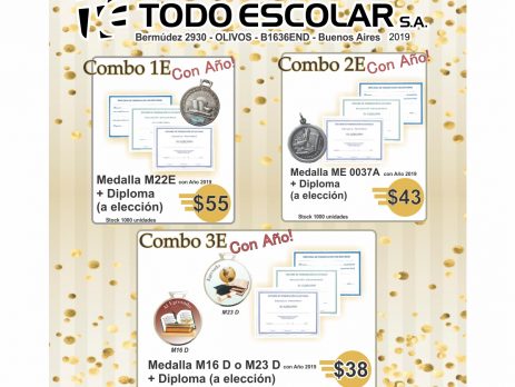 Aca están nuestras ofertas para que no te quedes sin la medalla que más te gusta para entregar a los egresados a fin de año! Tenemos tres opciones con precios increíbles que no te podés perder. Medallas de plata vieja esmaltadas con su diploma, medallas símil plata vieja y las NUEVAS medallas con dome, a todo color con diseños exclusivos. Todas las opciones son con el año 2019! Elegí la mejor para vos!!!