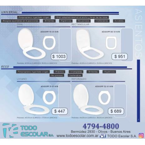 Ahora podes renovar los baños de tu escuela con productos de alta calidad y precios directo de fabrica!  Con la linea de asientos para inodoro UNIVERSAL se acabaron los problemas al momento de comprar. Productos de excelente calidad, resistentes y con diseños actualizados, tus baños ahora pueden lucir como nuevos!