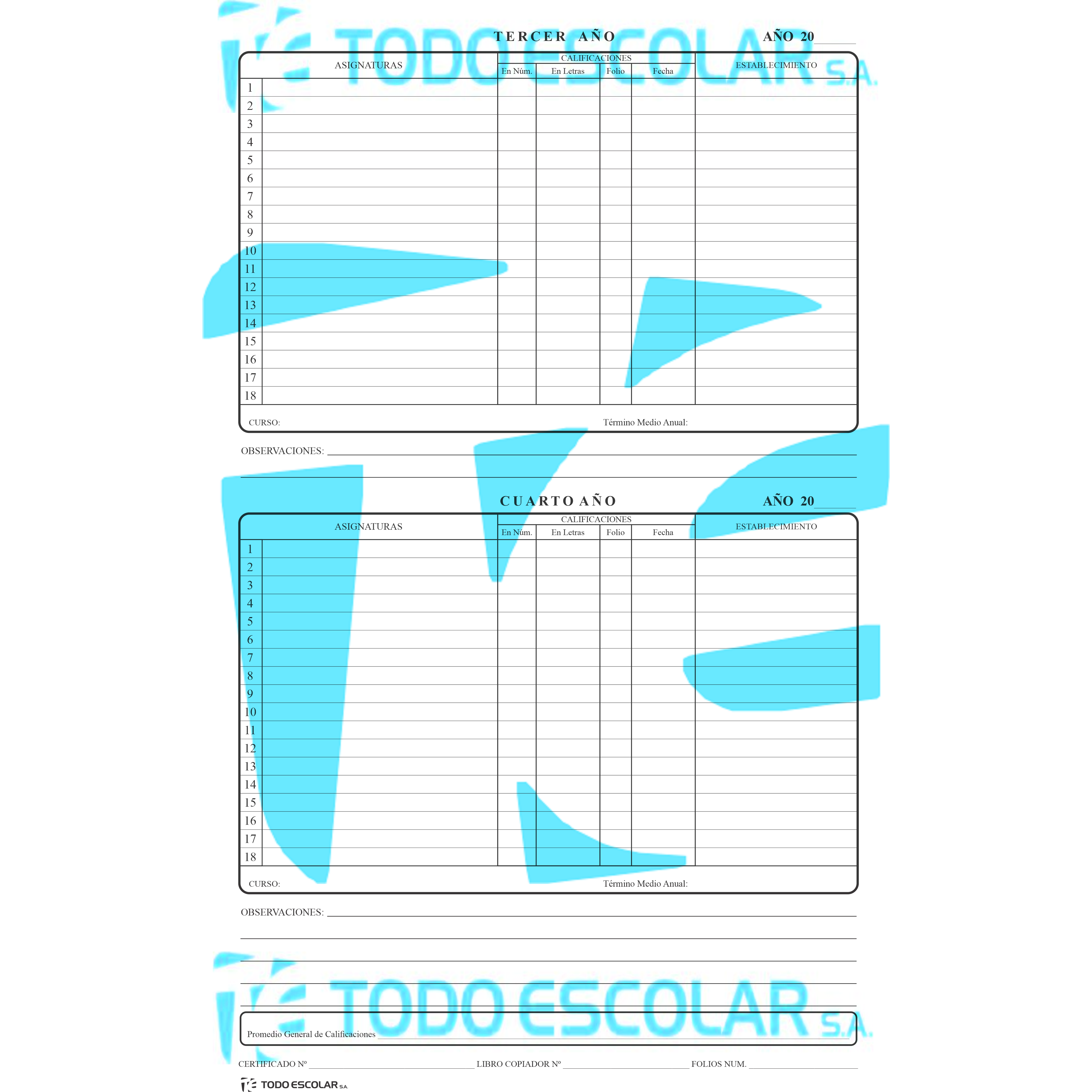 Libro matriz 4 años Terciario/ profesorado 200 folios-18 materias. SIN FOLIAR – 507