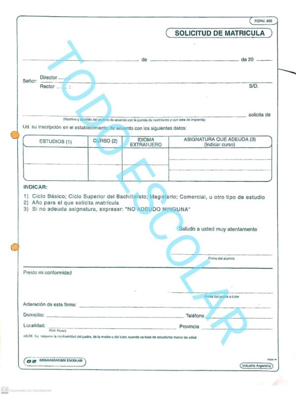 Solicitud De Matrícula X 50