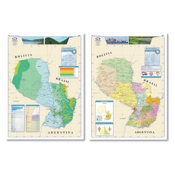 Mapa Doble Faz físico/político Paraguay 95X130 – DF Py