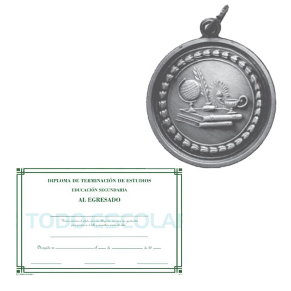 Medalla Símil Plata Vieja Con Año ME0037 + Diploma Escuela Secundaria