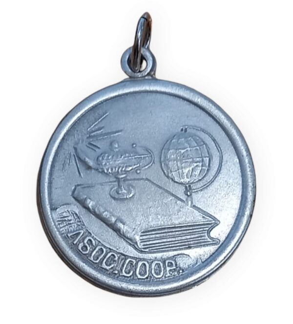 Medalla Globo Lámpara y Libro «ASOC COOP» Plata vieja 28MM **OFERTA**- M6